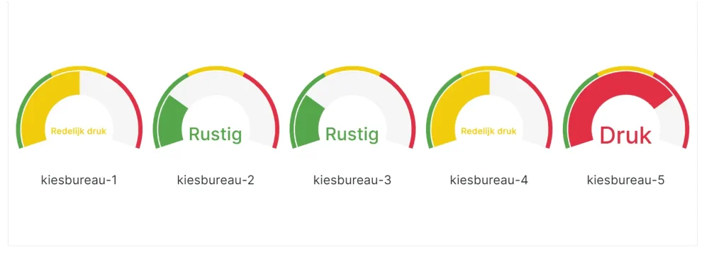 The result was an app in which poll workers at various voting stations in Aalter could input how busy it was at their station. The statuses ranged from quiet to average to (very) busy, based on predefined criteria discussed within the municipality.